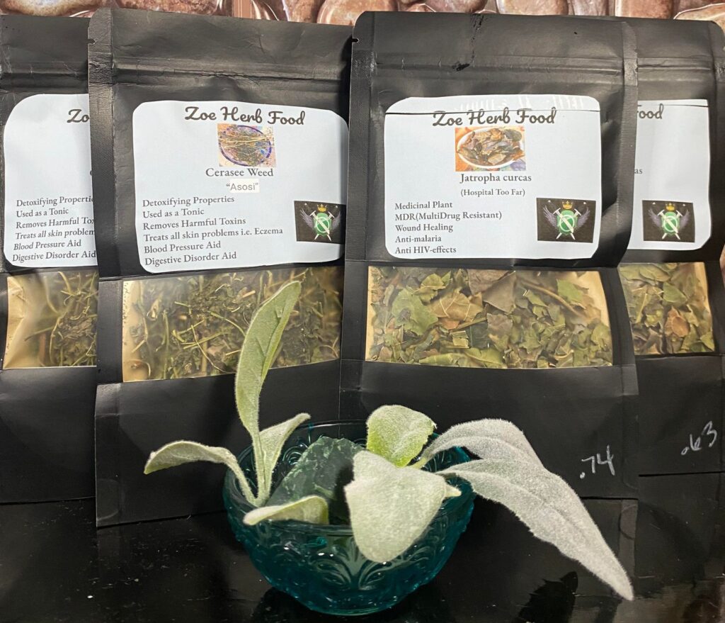 Jatropha, Soursop Leaves, Cerasee — traditional herbs for cleansing and digestive support.